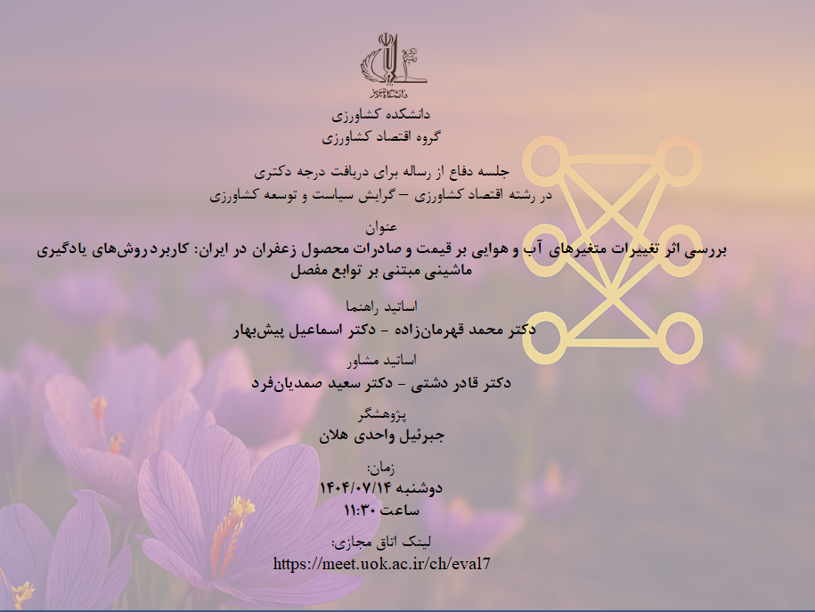 بررسی اثر تغییرات متغیرهای آب و هوایی بر قیمت و صادرات محصول زعفران در ایران: کاربرد روشهای یادگیری ماشینی مبتنی بر توابع مفصل